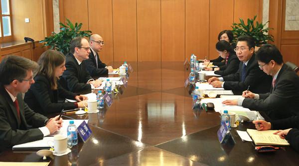在會談中,申長雨回顧了兩局合作歷史,自1996年中英兩局簽署合作諒解備忘錄以來,雙方已經(jīng)在高層互訪、合作舉辦研討會、專利審查員交流等領(lǐng)域開展了廣泛而富有成效的合作。2013年12月,中英兩局在雙方國家領(lǐng)導(dǎo)人的見證下簽署了中英專利審查高速路(PPH)協(xié)議。今年,兩局還將在專利審查員交流、專利審查高速路(PPH)試點項目的啟動、中英知識產(chǎn)權(quán)研討會和兩局局長會議召開等方面展開合作。他表示,近年來,中國高度重視知識產(chǎn)權(quán)事業(yè)發(fā)展,特別是中國共產(chǎn)黨十八屆三中全會明確提出要加強知識產(chǎn)權(quán)運用和保護,這為未來工作的開展指明了方向。“我們愿意與英國知識產(chǎn)權(quán)局進一步加強合作,推動中英知識產(chǎn)權(quán)事業(yè)的發(fā)展,同時,我們也希望與英方一同努力,共同推動國際知識產(chǎn)權(quán)制度的發(fā)展和完善。”